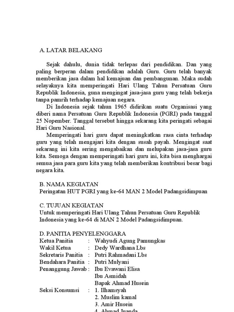 Contoh Latar Belakang Proposal Hari Guru : Pedoman Upacara Hari Guru Nasional 2019 Dan Hut Pgri Ke 74 Informasi Pendidikan Dan Dunia Kerja : Judul kegiatan atau nama kegiatan;